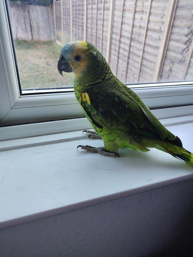 Amazon parrots are among the more popular medium-sized parrot species, which might have something to do with their gregarious personalities. They are often described as boisterous, playful, and outgoing — some even like to sing. Male Amazons have a reputation for exhibiting “macho” behavior — they might flare their tail feathers, pin their eyes and “strut” across the floor or table top