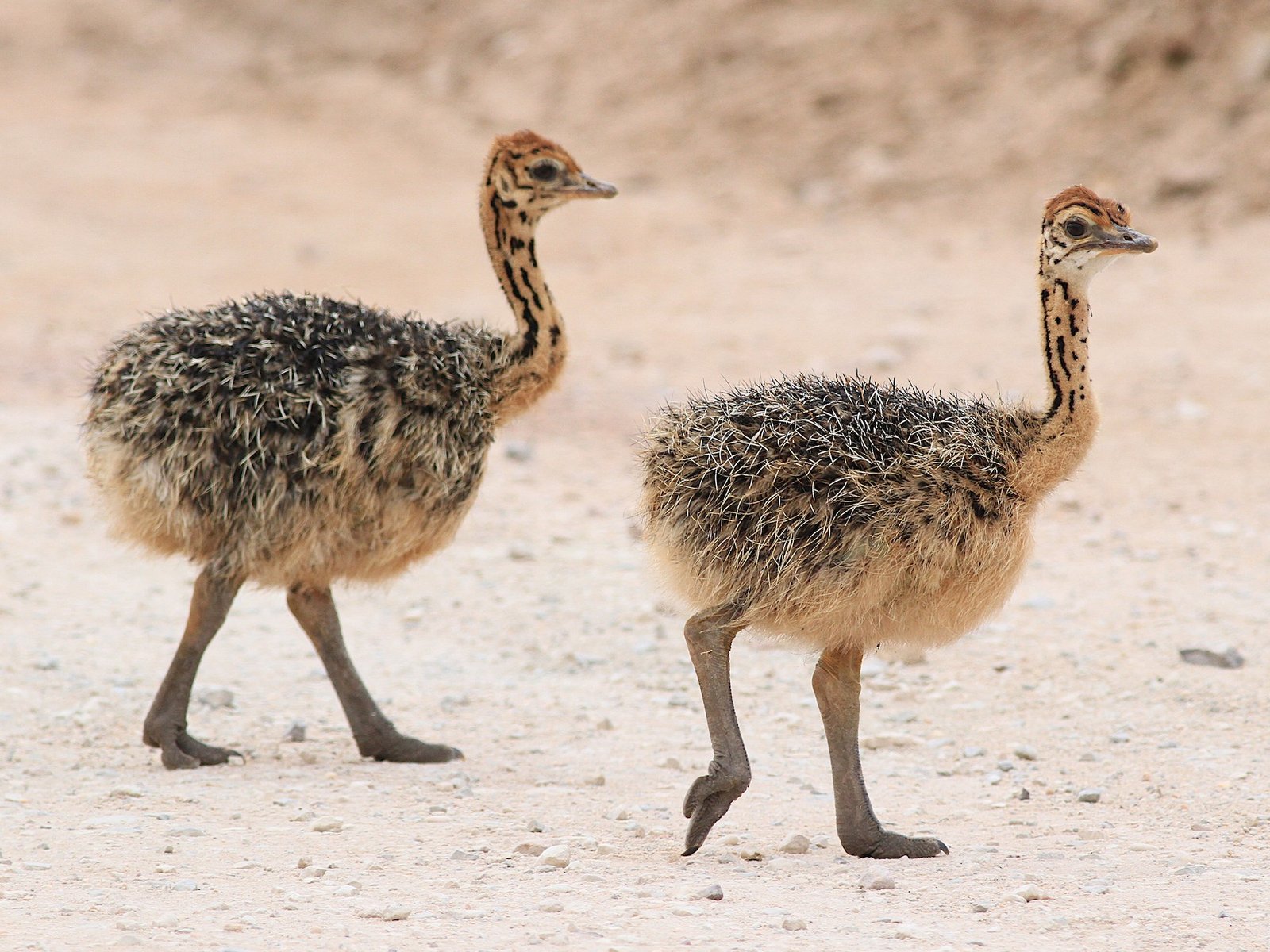 Ostriches are large, flightless birds that have long legs and a long neck that protrudes from a round body. Males have bold black-and-white coloring that they use to attract females. Females, on the other hand, are light brown. Ostriches are bigger than any other bird in the world.